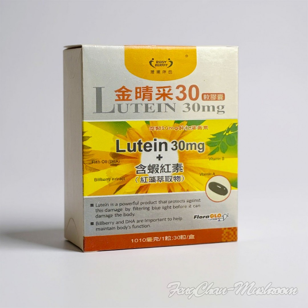 ●專利明亮成份,金盞花、柑橘、山桑子萃取物,維生素A、維生素B1,每顆30mg純化葉黃素是同類品六倍。